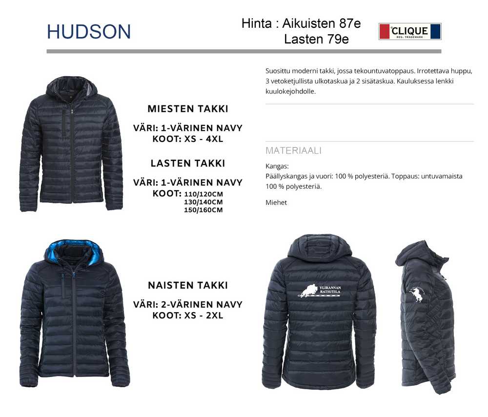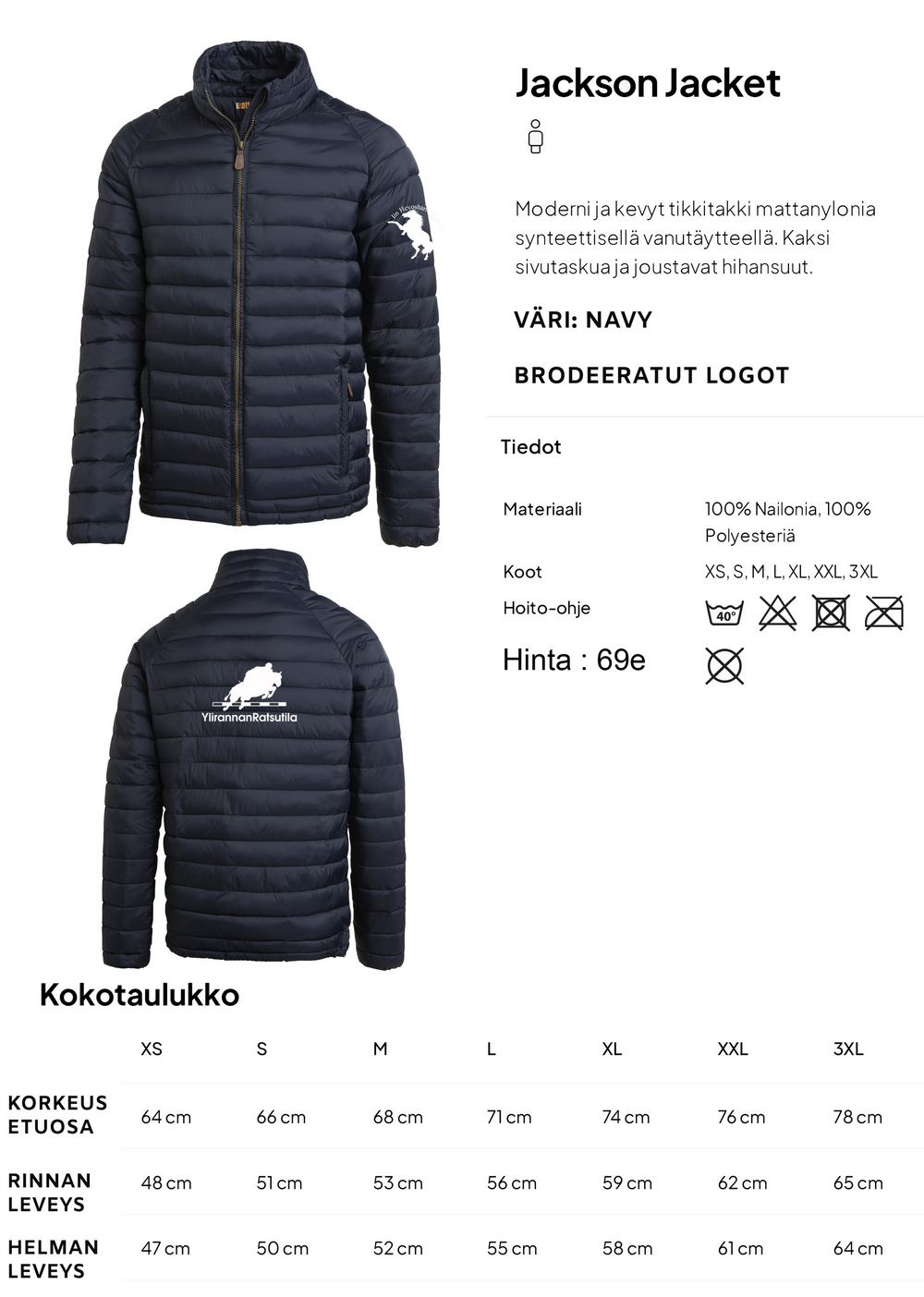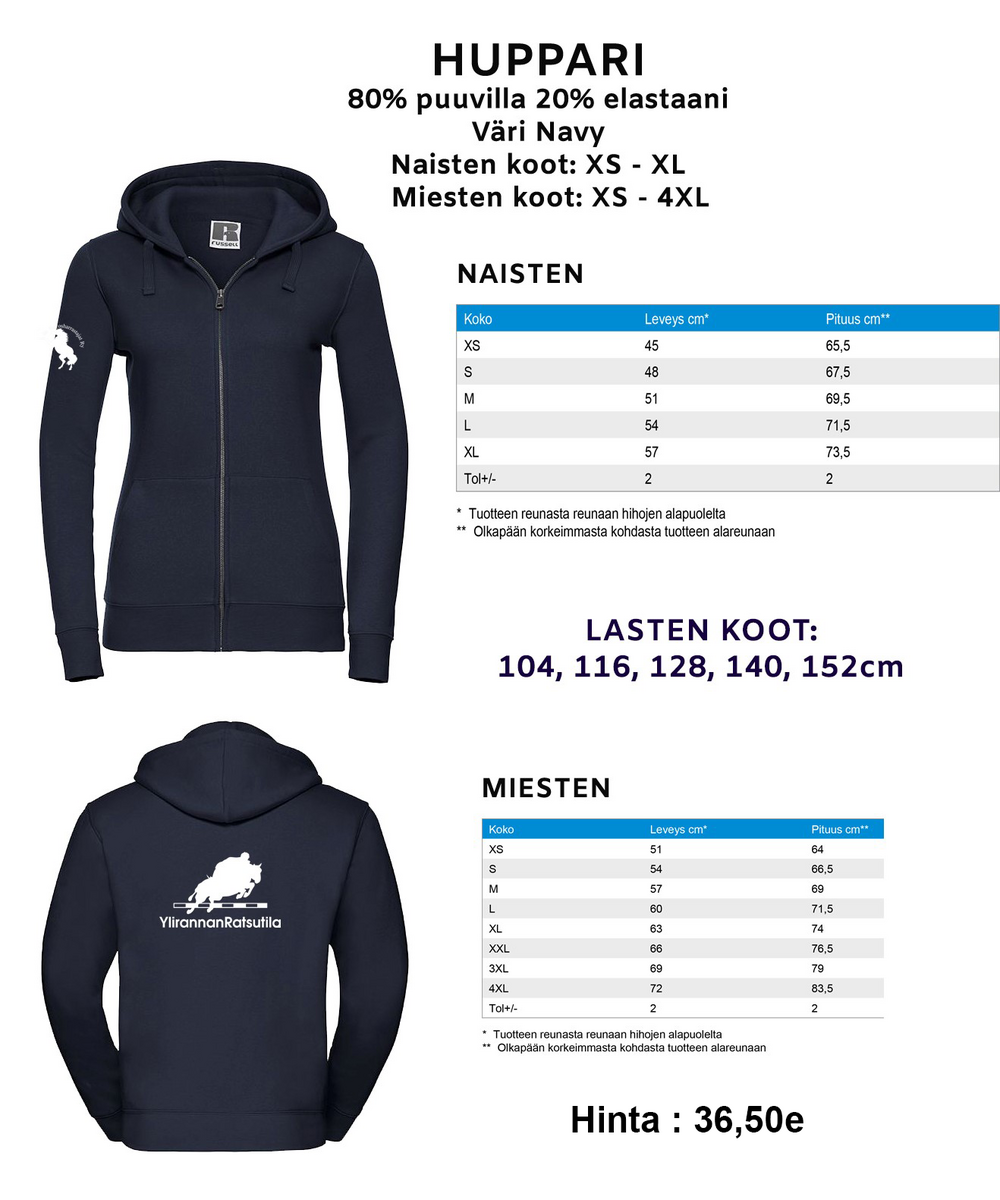 Vaatteita voit tilata joko tallilla olevaan listaan tai laittaa viestiä Ylirannan ratsutilan tuntipuhelimeen 040 417 4761.