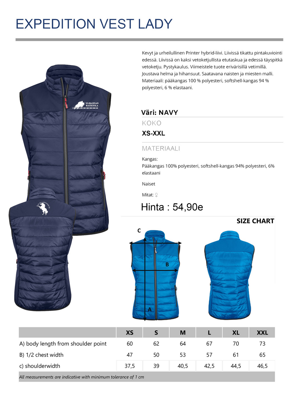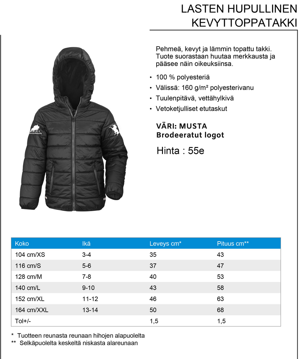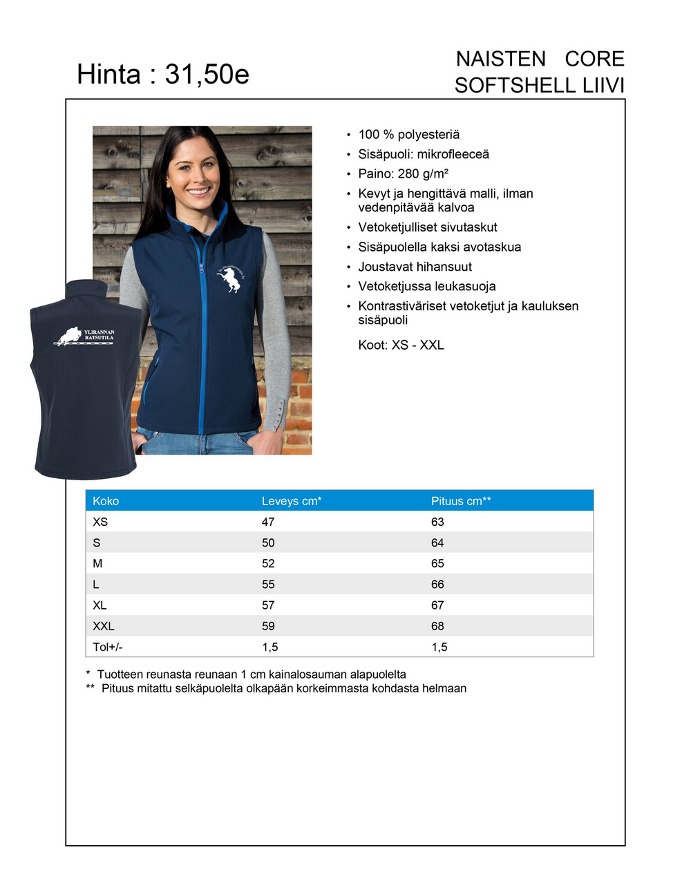 Vaatteita voit tilata joko tallilla olevaan listaan tai laittaa viestiä Ylirannan ratsutilan tuntipuhelimeen 040 417 4761.